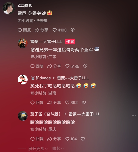 朱俊龙现身评论区互动:“雷巨,你很关键。”