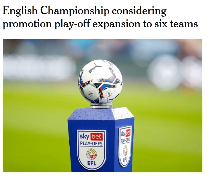 09月11日讯 据The Athletic报道,EFL考虑英冠升级附加赛再增设一轮,参赛队伍扩军至6支。