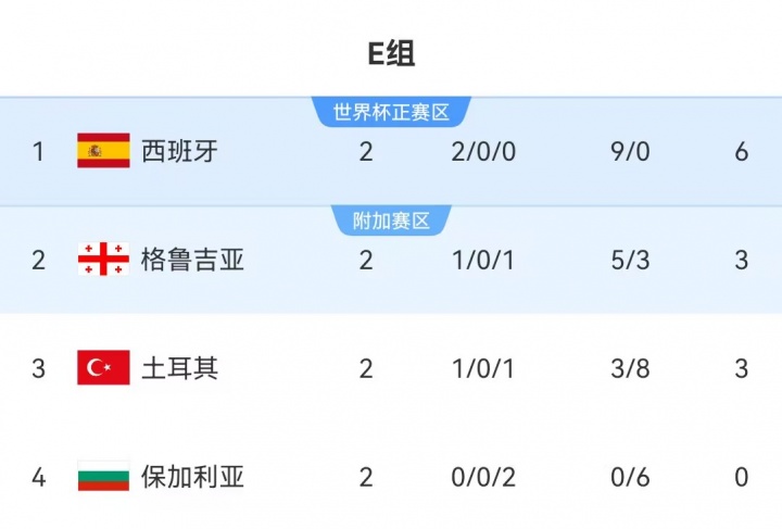 西班牙本月将进行两场世预赛欧洲区比赛:10月12日主场迎战格鲁吉亚,10月15日迎战保加利亚。目前西班牙在世预赛欧洲区E组2战全胜排名第1。